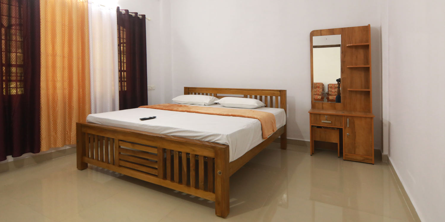 Periyar Homes offers ample storage space in its rooms, including wardrobes and shelves, to ensure guests can keep their belongings organized and easily accessible.